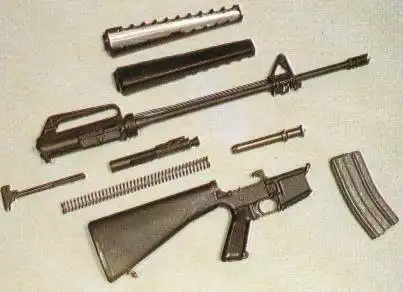 Винтовка М16А1 была разработана конструктором фирмы "Армалайт" Юджином Стоунером и принята на вооружение сухопутных войск США в 1967 г. Ее главная особенность - применение малокалиберного патрона с недостаточной стабилизацие пули из-за малой крутизны нарезки ствола, что приводит к тому, что при попадании в тело человека такая пуля начинает кувыркаться, нанося тяжелые рваные раны.