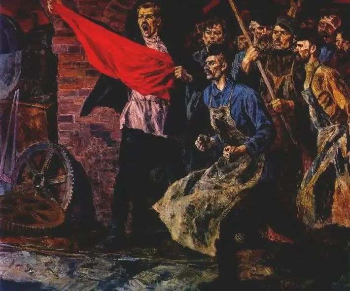 П. Крохоняткин. Забастовка на фабрике. 1953