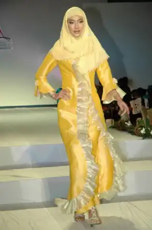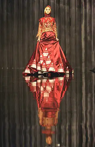 Модель демонстрирует творение малайзийского дизайнера Рамли (Ramli), впервые пердставленное на Фестивале исламской моды в Куала Лумпур.