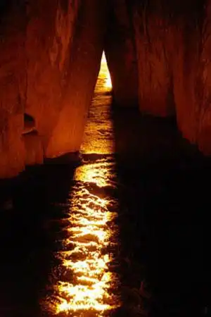 Туннель ориентирован на юго-восток, точно на место восхода Солнца в день зимнего солнцестояния. Над входом находится отверстие — окно 20 см в ширину, через которое солнечные лучи могут проникать к внутренней камере.