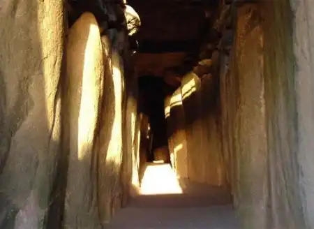 Коридор 19 метров в длинну ведет в погребальную камеру, основу которой составляют вертикально поставленные каменные монолиты весом от 20 до 40 тонн.