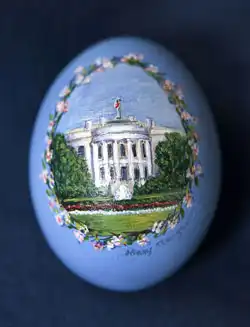 Каждый год художники со всей Америки на Пасху расписывают яйца (и инкрустируют) и присылают их в Белый Дом. Затем происходит голосование, и выбирают лучшего художника, который сделает Главное Яйцо Года.