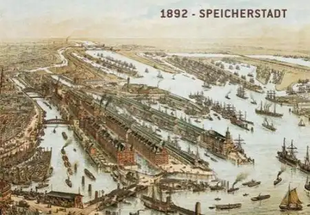 А до 1963 года здесь располагалось старое здание складов, построенное ещё в 1875 году, которое было символом портового Гамбурга...