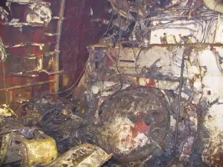 Так, видимо, от холода, страха и по причине темноты, кто-то меняя регенеративный патрон, выронил его в воду, которая потихоньку прибывала через муфты гребных валов. Вода была смешана с маслом, поэтому упавший регенеративный патрон, мгновенно вызвал объемный пожар."