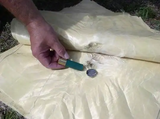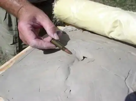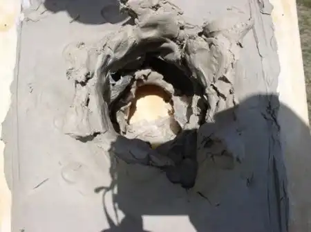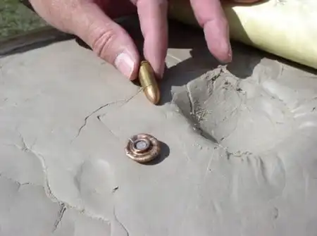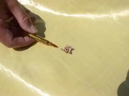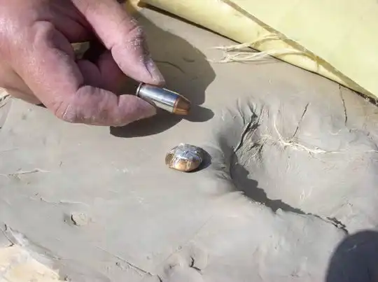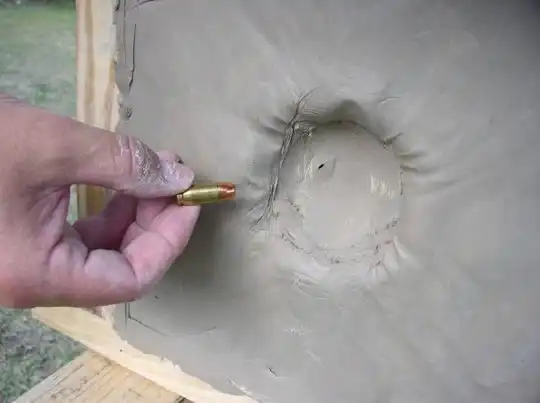 Мы решили попробовать шаровидную 9мм пулю, вы видите, как это сгладило удар...