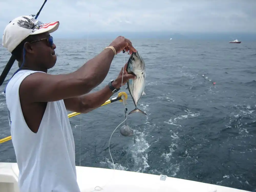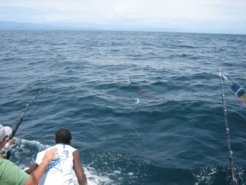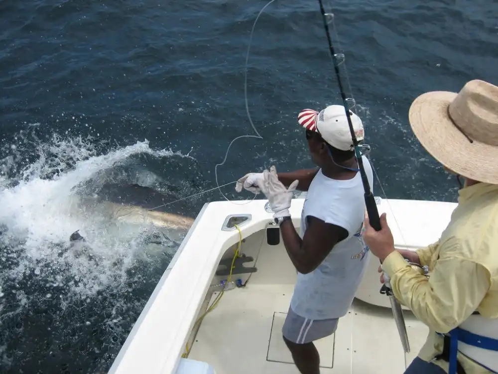 Рыба, которая там сорвалась называется Blue Marlin. Очень крупная рыба.