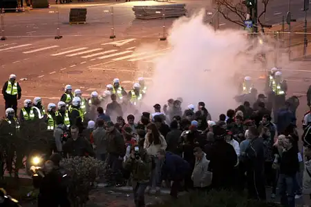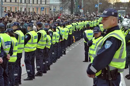 Эстонская полиция применила резиновые дубинки и слезоточивый газ против граждан, выступающих против переноса памятника советскому Воину-освободителю, установленного в центре Таллина.