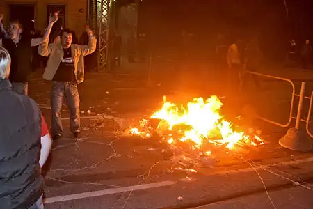 Попытки людей возложить цветы у подножия памятника успехом не увенчались. В течение дня обстановка накалялась и уже к вечеру переросла в потасовку.