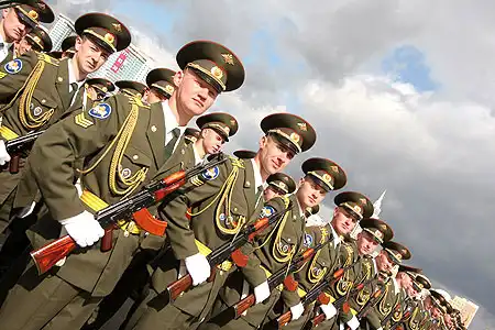 В репетиции парада участвовали 7 тыс. военнослужащих, одетых в парадную форму. Они хором исполнили гимн России под непрерывный аккомпанемент артиллерийских орудий. Смотр войск прошел под руководством министра обороны России Анатолия Сердюкова, который будет принимать парад 9 мая. Руководитель парада командующий войсками Московского военного округа генерал армии Владимир Бакин доложил министру обороны о готовности парадных расчетов к праздничному шествию на Красной площади 9 мая.