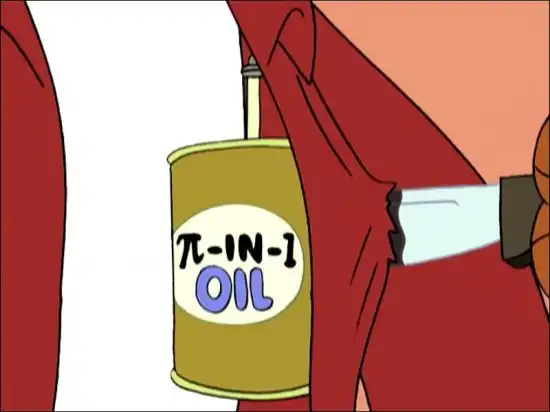 В серии 3ACV11 Insane in the Mainframe фигурирует смазка для роботов π-в-одном. Как мы видим, со времён шампуней два-в-одном технологии значительно продвинулись.