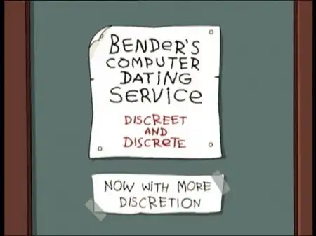 Эти два слова написаны на двери у Бендера, открывшего свою «службу знакомств» в серии 2ACV07 Put Your Head on My Shoulder. К сожалению, чтобы оценить шутку, надо знать не только математику, но и английский язык. Первое слово можно перевести как «благоразумный», «приличный». А вот второе - в том числе и название раздела математики.