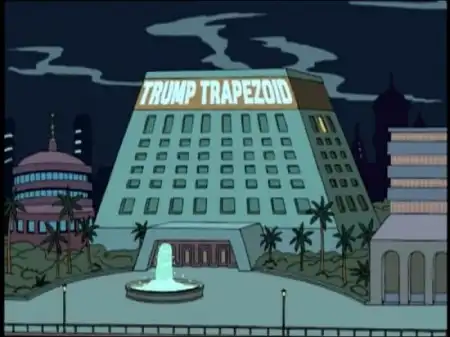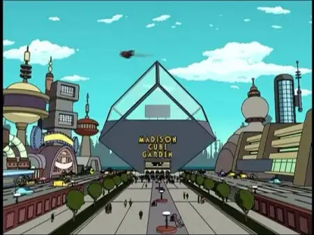 В эпизоде 1ACV09 Hell Is Other Robots впервые появляются два довольно любопытных здания: Мэдисон Куб Гарден (явная пародия на Мэдисон Сквер Гарден) и Трапецоид Трампа (прототип этого здания неизвестен, но Дональд Трамп вообще один из наиболее известных застройщиков Нью-Йорка), имеющие форму соответственно, куба и трапецоида. Впоследствии они появляются и в некоторых других эпизодах.