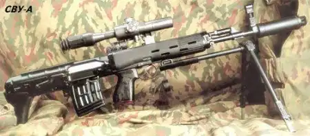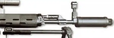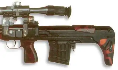 На винтовку крепится оптический прицел ПСО-1 (1П43). Крепление прицела перенесено чуть вперед и вверх. Возможна установка ночных прицелов типа НСПУ, лазерного целеуказателя. Поскольку оптический прицел располагается над центром тяжести, он может использоваться в боевых условиях как рукоятка для переноски - прочность корпуса и крепления ПСО-1 это допускает. Секторный открытый прицел СВД заменен диоптрическим, выполненным по типу охотничьего оружия: регулируемый диоптр и мушка с ограждением смонтированы на откидных стойках. Барабанчик диоптрического прицела, как и планка прицела СВД, имеет установки до 1300 м - больше, чем может дать такое оружие. Стрельба с диоптрическим прицелом возможна как при снятом, так и при установленном оптическом прицеле. Возвышение диоптрического прицела над прикладом не вынуждает стрелка излишне наклонять голову. Питание - от штатного магазина СВД на 10 патронов. Крепления для штыка-ножа не предусмотрено. Затыльник, ствольная коробка, пистолетная рукоятка и цевье покрываются маскировочной окраской. Имеются антабки для ремня. СВУ создавалась для воздушно-десантных войск, прошла испытания, но не была принята на вооружение. В начале же 90-х годов интерес к ней проявило МВД, выдавшее заказ в 1991г. Доработка СВУ была связана в основном с изменениями, внесенными за эти годы в детали серийной СВД. В 1993 г. началась опытная эксплуатация винтовок.