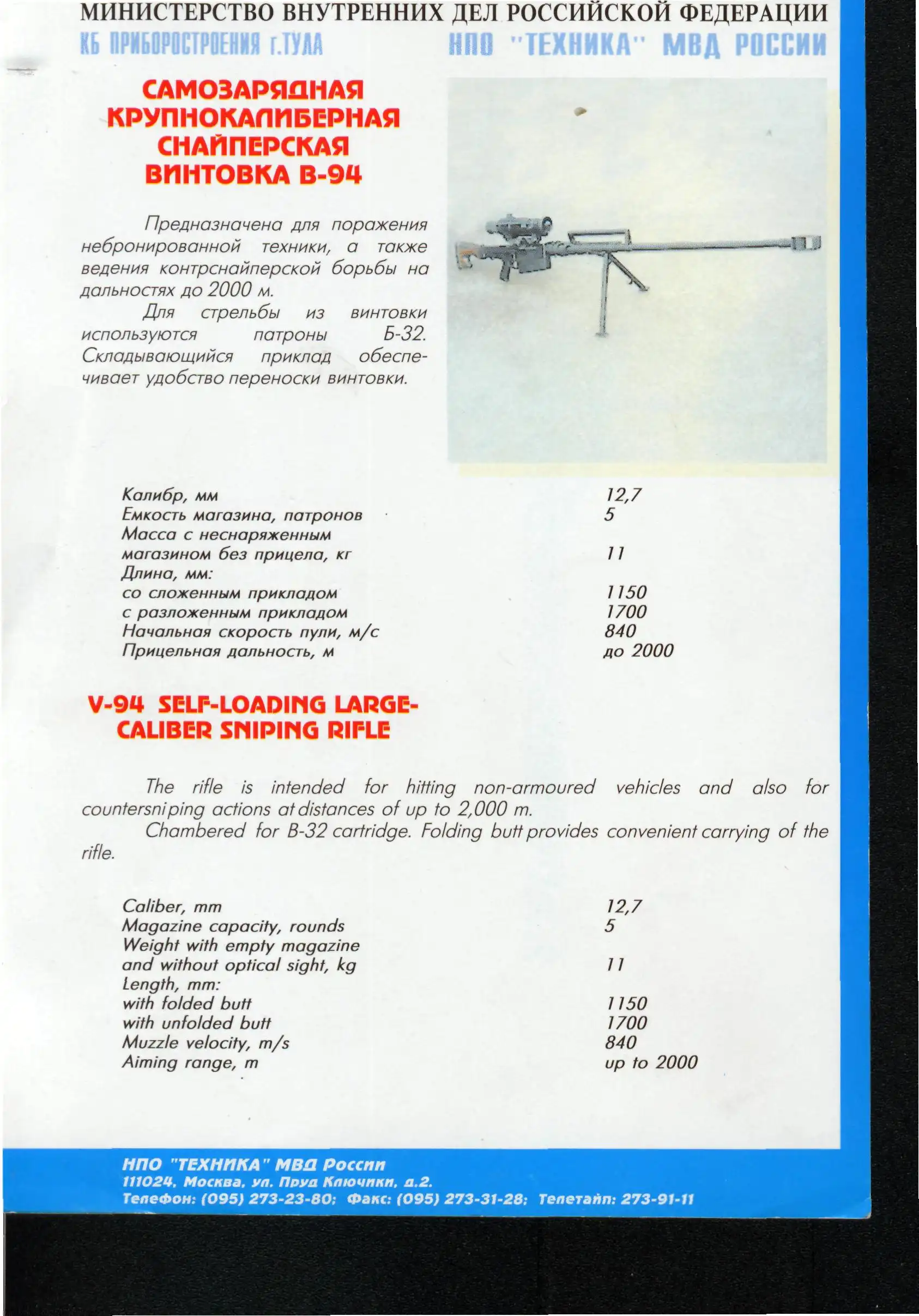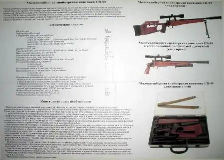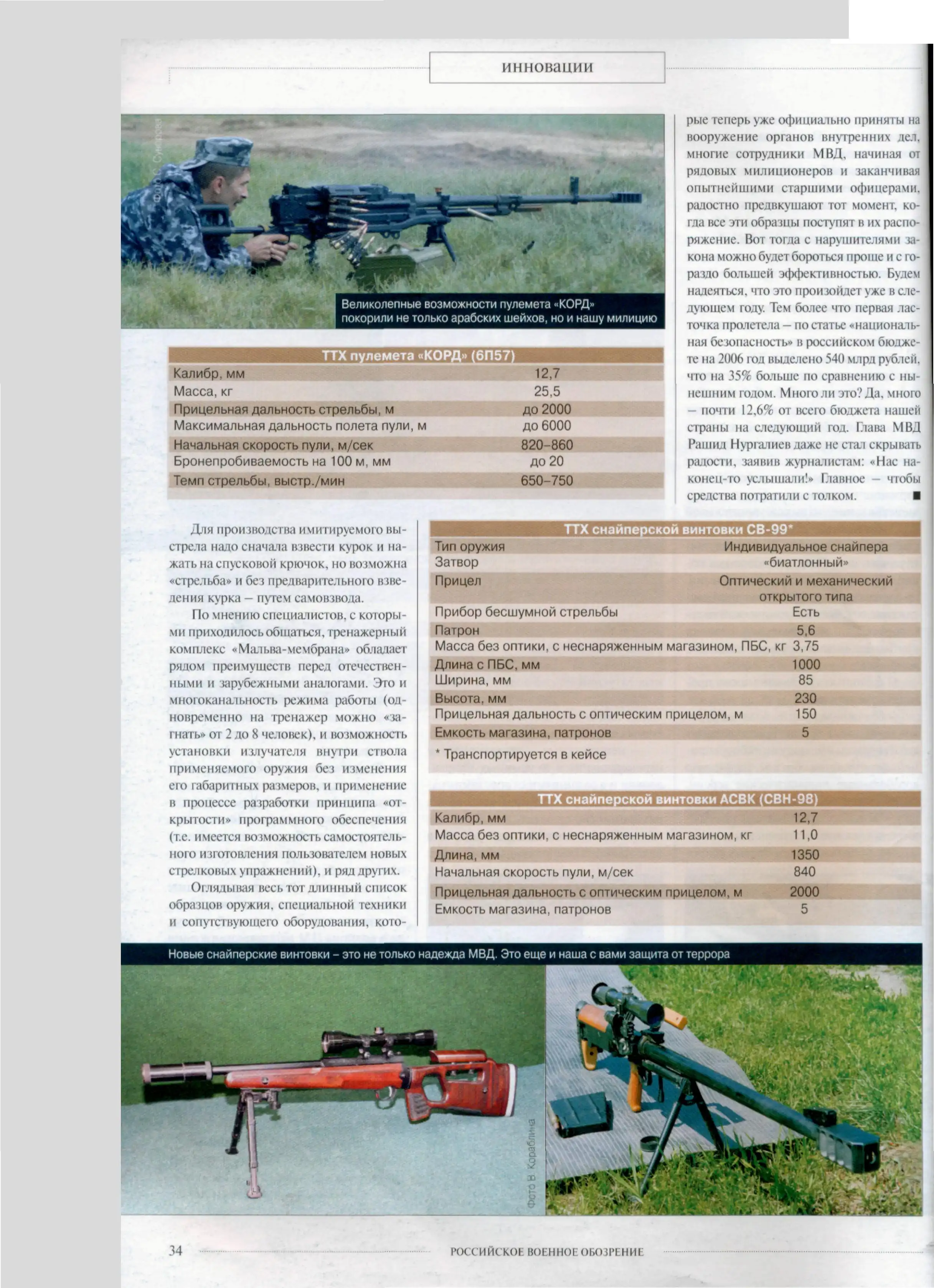 здесь представлины несколько образцов винтовак с кратким описанием основных характеристик и пусть вас неудивляет нахождение в данной линейке оружия пулемета-это "Корд"( ево еше называют снайперским пулеметом) так как дальность прицельной стрельбы на нем состовляет 2000 м и предусмотрена возможность установки оптики и ночного прицела.От себя могу добавить что все представлинные образцы уже стоят на вооружении и применяютца в часности на северном кавказе....