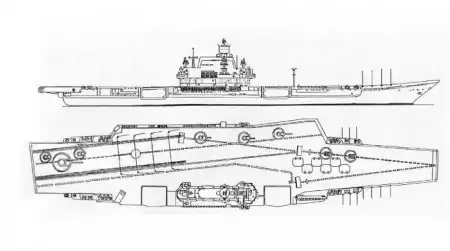 Заложен под названием «Рига» через 20 мин. после спуска на воду головного ТАВКР. 19.6.1990 переименован в «Варяг». В 1992 г., когда ТАВКР находился в стадии достройки на плаву со степенью технической готовности около 70%, строительство было прекращено.