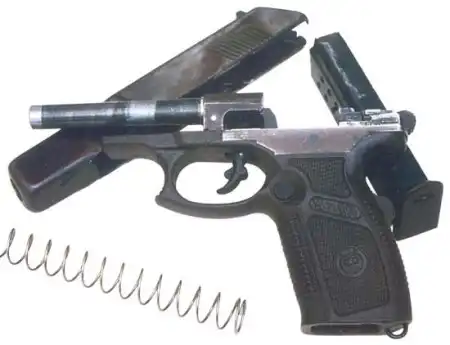 Пистолет имеет повышенную скорострельность благодаря наличию механизма автоматического досылания патрона при смене магазина.