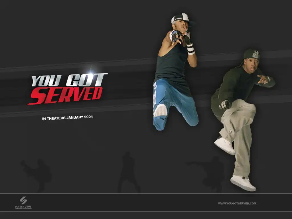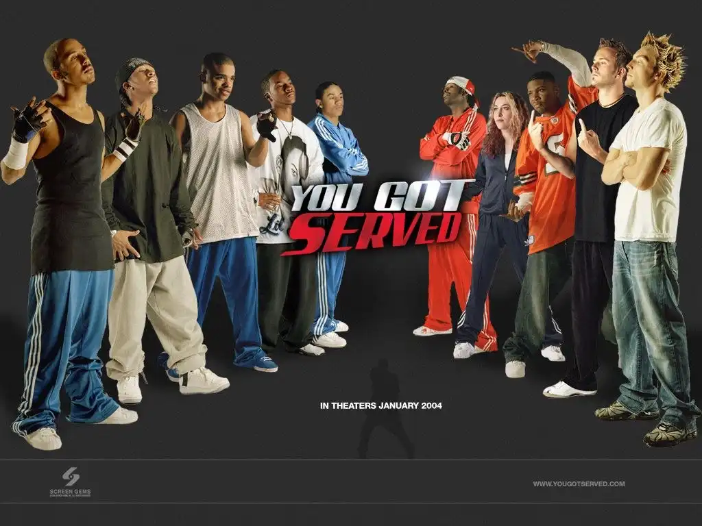 * «You Got Served» (США, 2004) - фильм, в котором исследуется субкультура уличного танцевания. Два героя, Дэвид и Элджин, хотят открыть записывающую студию и студию танцев хип-хоп. Чтобы это случилось, им надо победить на танцевальном соревновании. Длительность фильма – 1 час 40 минут. В ролях : J. Boog, Lil' Fizz, Raz B, Dreux Frederic, Jennifer Freeman. Русский перевод названия – «Танцы улиц».