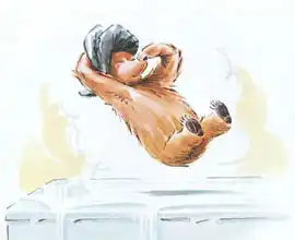 Паддингтон с опаской поглядел на большого дядю, который приседал и делал вдох-выдох. «Миссис Браун, миссис Браун», - с испугом завопил Паддингтон, - «он сейчас весь воздух вдохнет и мне ничего не останется!»