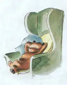 После купания Паддингтон устроился в мягком кресле у камина. До чего хорошо быть медведем! А особенно медвежонком. Медвежонком, которого зовут Паддингтон. И которому, кажется, очень повезло, что он попал в семью Браунов
