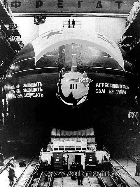 Головная ПЛАРБ пр.941 ТК-208 была заложена на СМП в 1976 году, спущена на воду 23 сентября 1980 года, вступила в строй в конце 1981 года, практически одновременно с ПЛАРБ ВМС США "Огайо". Первым ТАПКР командовал капитан 1 ранга А.В. Ольховников, удостоенный за освоение столь уникального корабля звания Героя Советского Союза.