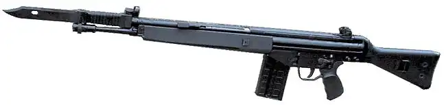 Винтовка G3A3 с установленным штык-ножом и цевьем более современного дизайна