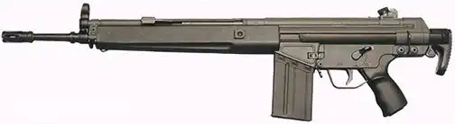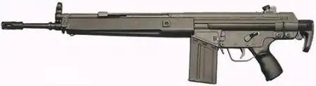 Винтовка G3A3 - модифицированный вариант, с пластиковым вентилируемым цевьем и барабанным целиком