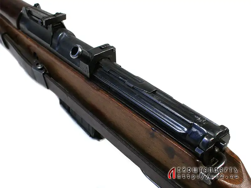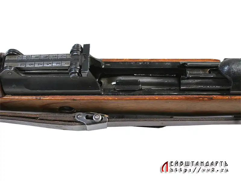 Все металлические части в оригинальном воронении, на казенной части и затворе присутствует множество клейм военной приемки. Приклад и ложа из клеенной фанеры, полностью сохранилось заводское покрытие. Винтовка укомплектована оригинальным кожаным ремнем.