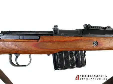 Автоматическая винтовка Walther G43 в отличной сохранности. Решение о постановке на вооружение германской армии самозарядных винтовок было принято достаточно поздно, уже в разгаре войны. Между образцами, представленными известными оружейными фирмами Вальтер и Маузер, был проведен конкурс, и после войсковых испытаний предпочтение было отдано разработке фирмы Вальтер. Новая винтовка получила название "G43" - "Винтовка образца 1943 года". Но наладить достаточно широкое производство не удалось, поэтому винтовки данного образца встречаются редко.