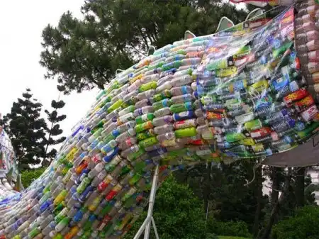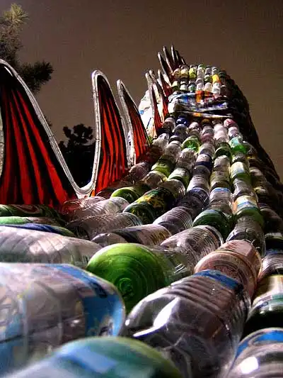Дракона из пластиковых бутылок длиной 101 метр сделали в Тайване.