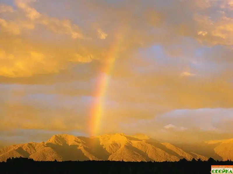 В горах и других местах, где очень чистый воздух, можно наблюдать третью радугу (угловой радиус порядка 60°)...