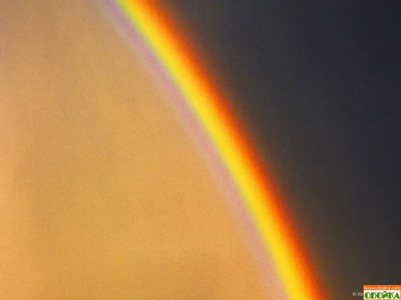 ...Иногда можно увидеть ещё одну, менее яркую радугу вокруг первой. Это вторичная радуга, в которой свет отражается в капле два раза. Во вторичной радуге «перевёрнутый» порядок цветов — снаружи находится фиолетовый, а внутри красный. Угловой радиус вторичной радуги 50—53°. Небо между двумя радугами обычно имеет заметно более темный оттенок.