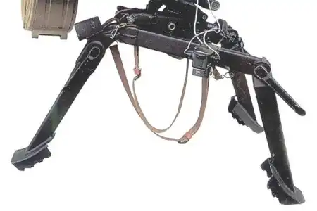 Ручка регулирования темпа стрельбы имеет флажок, занимающий два фиксированных положения. В верхнем положении обеспечивается максимальный темп 350-400 выстрелов в минуту, в нижнем — минимальный (50-100 выстрелов в минуту). Ударно-спусковой механизм в сборе крепится на левой стенке ствольной коробки.