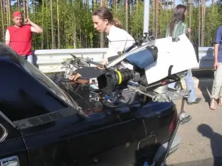 Вот такие роботы с кинокамерами "сидят" на капоте для наружной съемки движущегося автомобиля.