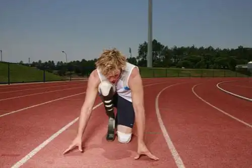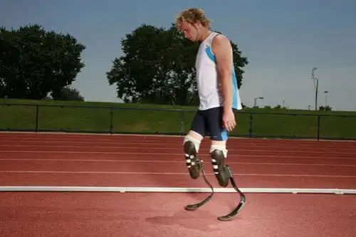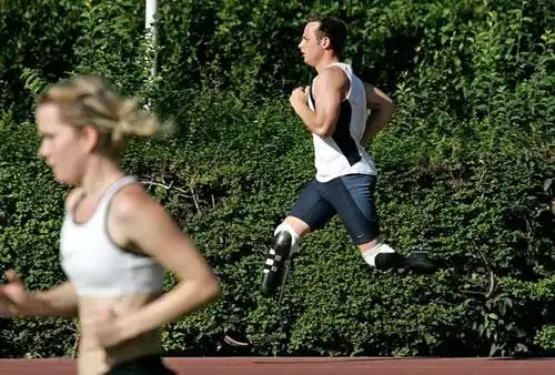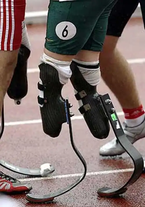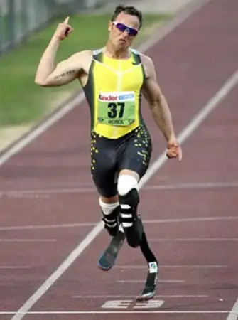 20—летний южноафриканец, которому принадлежат мировые рекорды среди ампутантов на дистанциях 100, 200 и 400 метров, бегает, как и многие другие спортсмены-инвалиды, на специальных ступнях- «лезвиях» из карбона…