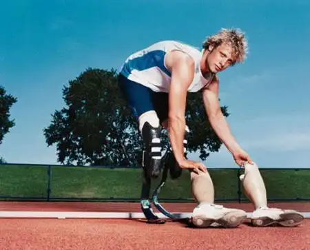 У Оскара нет обеих ног ниже колен, он бегает на протезах, участвуя при этом в обычных соревнованиях наряду с другими легкоатлетами…