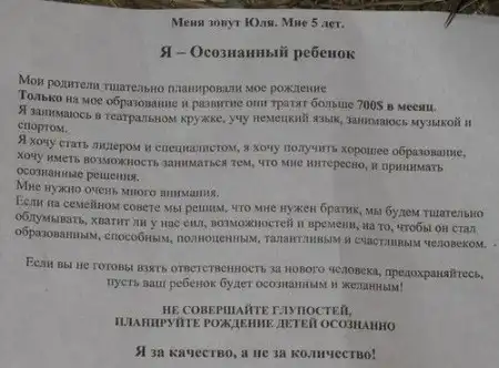 Вчера на Селигере недалеко от группы палаток, под вывеской "Молодые семьи" прошла показательная акция. Напомню, что направление "Молодые семьи" пропагандирует лозунги "Хочу троих", направленные на улучшение демографической ситуации. В ходе акции 5-летняя девочка Юля раздавала прохожим презервативы и листовки следующего содержания.