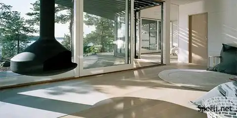 Живешь, а мимо проходящий человек заглядывается на тебя как на животное в клетке. Слишком уж много стеклянныйх стен .Лично мне бы не хотелось жить там, а так домик красивый