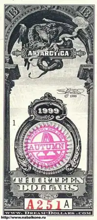 Правда в 1899 эта колония неожиданно исчезла и все, что осталось с тех пор - это коллекция журналов, дневников, книг и конечно Доллары Мечты (Dream-Dollars). В 1999 после 100 лет после исчезновения колони Историческое Общество Надирии (Nadiria Historical Society) решило выпустить новую версию Долларов Мечты.