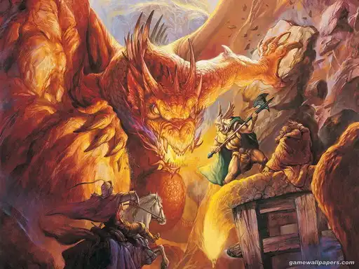 Дракон- чудовище которое существует пожалуй во всех известных мифологических системах. Воровать и захватывать золото это его основное занятие. Далее он сваливает награбленное в самый дальний угол своей пещеры и спит на этой кучи. Любит есть людей, а особенным лакомством является для него девственницы. Воюет с гномами из-за их сокровищ и не всегда выходит победителем так как гномам удается скрыться в подземельях и унести свои сокровища.