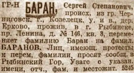 Одну угарную фамилию на другую.