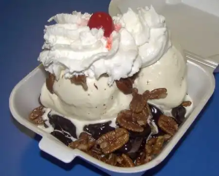 Сливочное мороженое с добавлением фруктов, сиропа, орехов и т.д. было впервые изготовлено в 1881 в местности под названием Ту Риверс (две реки), штат Висконсин в магазине мороженого Эда Бернерса. Стоило оно 5 центов и продавалось только по воскресеньям.