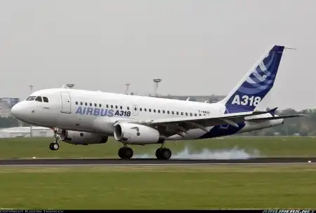 Airbus A318, мини-лайнер или самолет-малютка, как его назвали сами производители - самый маленький самолет Airbus. Впрочем, это не мешает ему вмещать 107 пассажиров в двух классах. По сравнению с A319 он оснащается более новыми Pratt & Whitney PW-6000, хотя установка CFM International CF56-5 также возможна. Другие отличия включают в себя доработанный профиль крыла и уменьшенная багажная дверь.