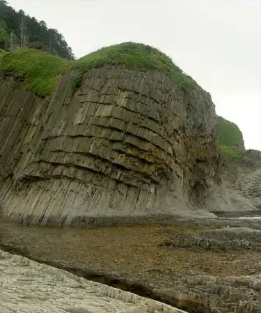 Столбчатая структура образована стекавшими здесь когда-то давно потоками лавы, каждый столб имеет правильное сечение…