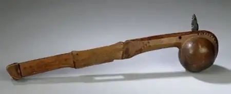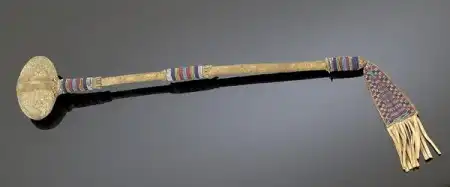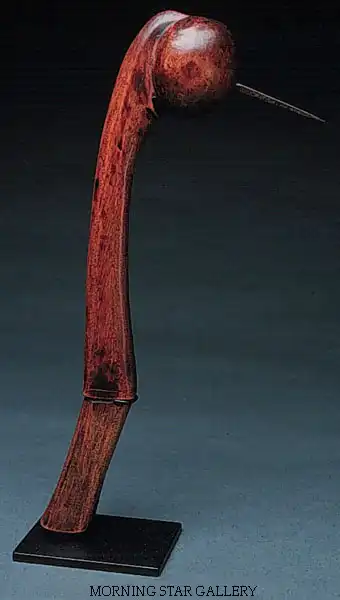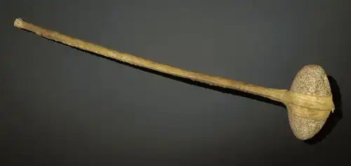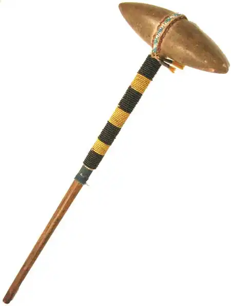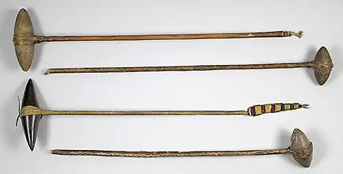 Не менее распространенным оружием, чем лук, были дубинки с жестко прикрепленными к рукояти каменными набалдашниками, которые использовали как в пешем бою, так и в конном. Воины старались нанести врагу палицей увечье, а затем добить его следующим ударом или ножом. Хвост Ласки из племени бладов рассказал, как следует использовать военную дубинку против ножа: «Если враг пытается пырнуть тебя ножом, ударь его по руке или запястью военной дубинкой, чтобы выбить нож. А затем ею разбей ему голову». Торговец Эдвин Дениг отмечал, что любая попытка отразить удар такой палицей приводила к перелому руки, а если парировать удар не удавалось, он сбивал на землю даже очень сильного человека. Использование другого вида дубинок, у которых каменный набалдашник свисал с рукояти, а не жестко закреплялся на ней, описал торговец Генри: «Конный воин мчится на полном скаку, вращая камень вокруг рукояти. Каждый меткий удар сбивает на землю человека или его лошадь».