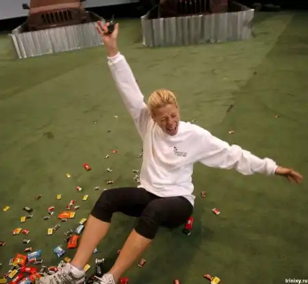 Два победителя затем выходили во второй круг, в котором им надо было найти ключи от автомобиля внутри салона, заваленного 25 тысячами шоколадных плиток.