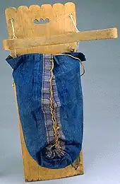 Практически ничем не отличаются от предыдущего типа люльки по форме, встречались среди ирокезских и алгонкинских племен востока. В этом типе люльки тонкая прямоугольная доска заменяет раму. Ее часто покрывали резьбой, богато украшали, и она была снабжена выступающей подставкой для ног. Дугу также сгибали под прямым углом и украшали. Младенца после пеленания клали на доску и крепко привязывали длинной лентой. У поуни дерево для доски тщательно выбирали и удаляли середину, так чтобы сохранить сердце и жизнь, иначе ребенок умрет. Пятна на коже дикой кошки, использовавшейся для покрывала, символизировали звезды, дуга – небо, а изогнутая борозда, вырезавшаяся на ней, обозначала молнию, чья сила олицетворялась стрелами, привязанными к дуге. Все части символические.