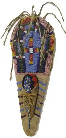 На равнинах люльки, сделанные из выделанной кожи, привязывались к раме из плоских дощечек, что особенно было характерно для кайова, команчей и других; но теперь все племена заимствуют ту или иную деталь друг у друга. Такие люльки можно считать самым совершенным типом этих приспособлений. Ребенок, завернутый в меха, был, таким образом полностью защищен. Перед лицом сгибалась плоская дуга, украшенная подвесками или амулетами и покрытая, на лучших образцах, дорогим капюшоном. Вся верхняя поверхность шкуры украшалась вышивкой иглами или другими украшениями, в которых преследовались символические и геральдические цели. Рамка укреплялась и носилась на спине матери или свисала с передней луки седла на веревках, привязывавшихся к остову сзади. У некоторых племен верхние концы рамы выступали вверх и украшались.