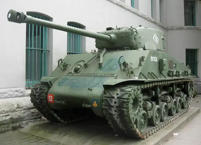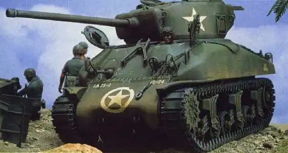 Танк типа "Шерман" разработан в 1942 г. как основной боевой танк армии США. Выпускался в пяти модификациях различными фирмами: "Фишер-Броди", "Форд", "Крайслер".