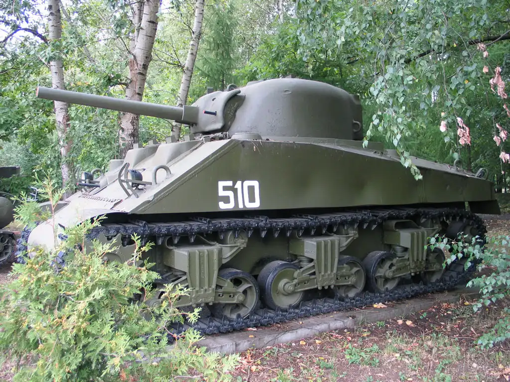Первоначально танки имели смотровые щели в лобовом листе корпуса; затем их закрыли броневыми кожухами и ввели перископы, и, наконец, в конце 1943-го - начале 1944 года появилась цельная лобовая плита, а люки были перенесены на крышу корпуса. Правда, пришлось изменить угол наклона лобовой брони с 47° до 56°. Еще одним главным отличием Шерманов друг от друга был тип силовой установки. Дизельный М4, обозначенный как М4А2 поставлялся по Ленд-лизу. Американцы использовали этот танк исключительно в корпусе морской пехоты, потому что на флоте проблем с соляркой не возникало. Танков с горизонтальной подвеской HVSS было получено Россией 183 шт.