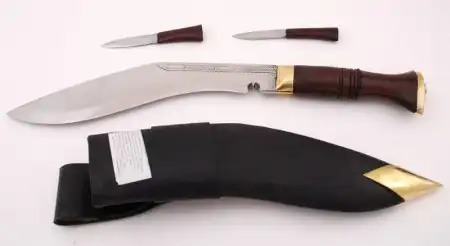 Обычно, кроме самого кукри в комплект входят два меньших ножа — карда и хакма. Первый — это нож для мелких работ, второй — тупой кусок стали с рукояткой, который служит в частности для разжигания огня.
